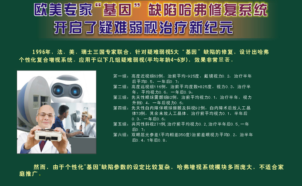 3、东莞黄先生:我家宝宝5岁时查出弱视右眼矫正视力0.1,左眼0.6,医生说是高度近视引起的,当时宝宝右眼近视1000度,左眼近视250度,我们知道了之后很着急,怕孩子的弱视治不好了。在医生的建议下,我们购买了眼博士多元增视系统进行治疗,经过3个月的治疗,宝宝的视力提升到了0.3和0.7,我们终于看到了治疗的希望。现在治疗快半年了,宝宝视力提升到了0.5和0.9,相信只要坚持治疗,宝宝一定能恢复到正常视力 |